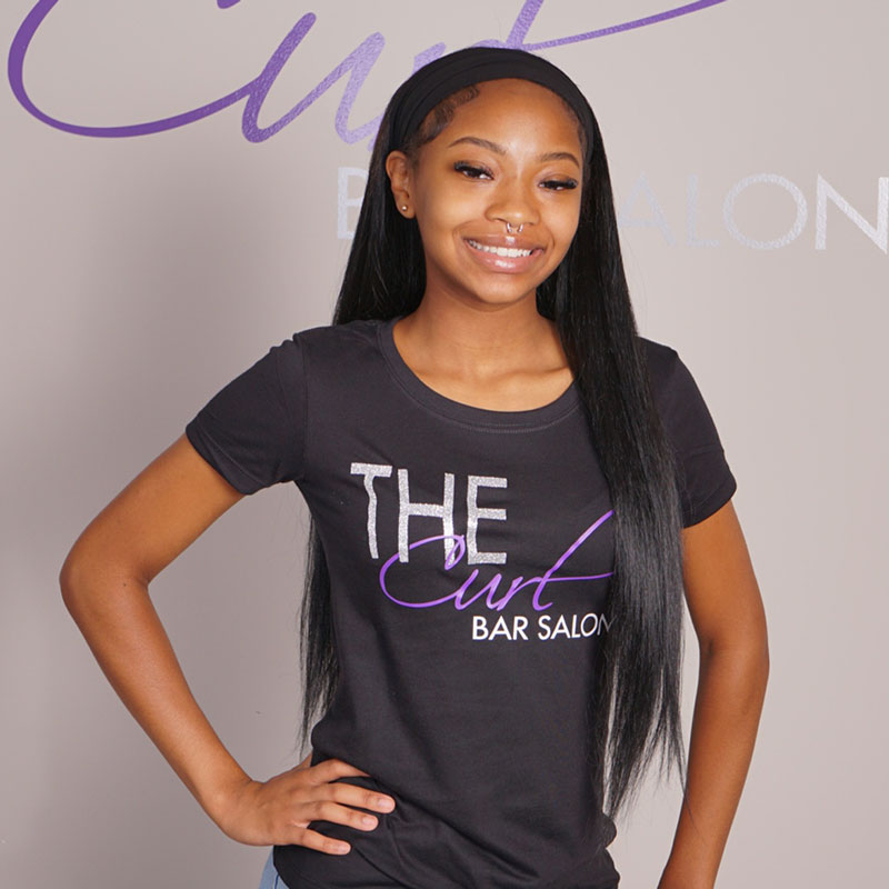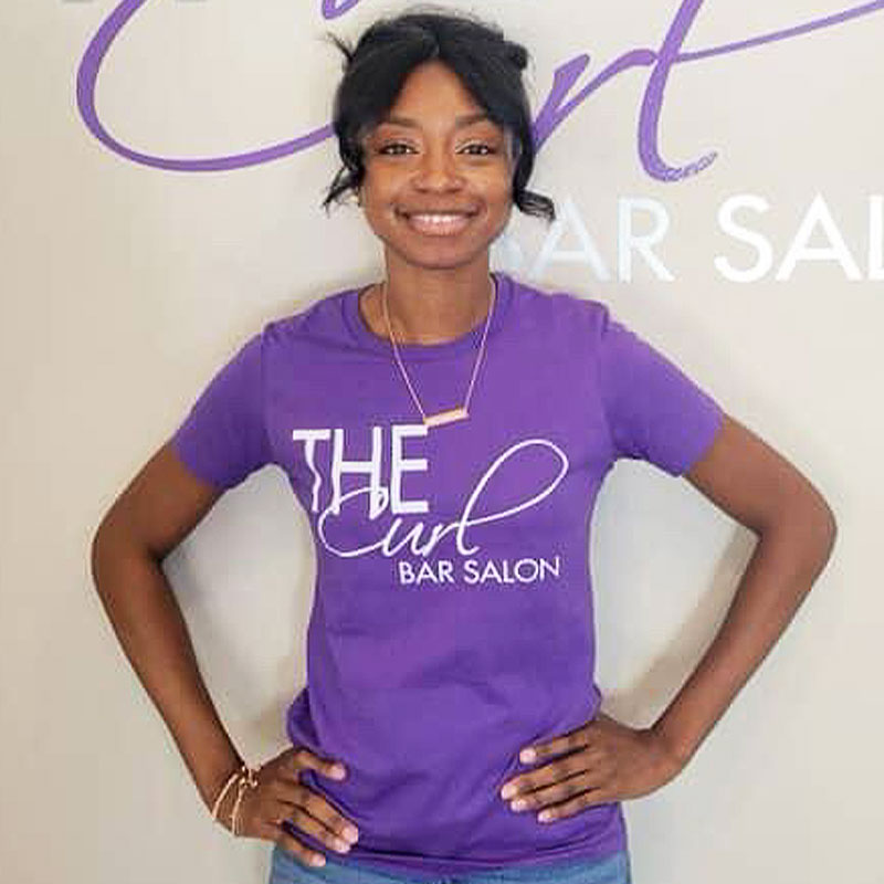 Hi, I’m Shamere – the proud owner of The Curl Bar Salon in Sugar Hill, GA. I’ve had a passion for hair since I was 16 years old and turned it into a career when I graduated from Gwinnett Technical College in 2015, earning my cosmetology diploma. With over 10 years of experience as a licensed Master Cosmetologist, I specialize in natural hair, children’s hair and locs.